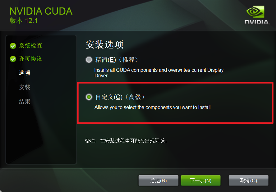 下载安装包执行即可,但是需要注意,安装的时候,前面几步都Next 就行,没什么可配置的,但是到安装选项一定要选择自定义安装,如下图,否则,可能出现原来的驱动被覆盖,产生意外的错误