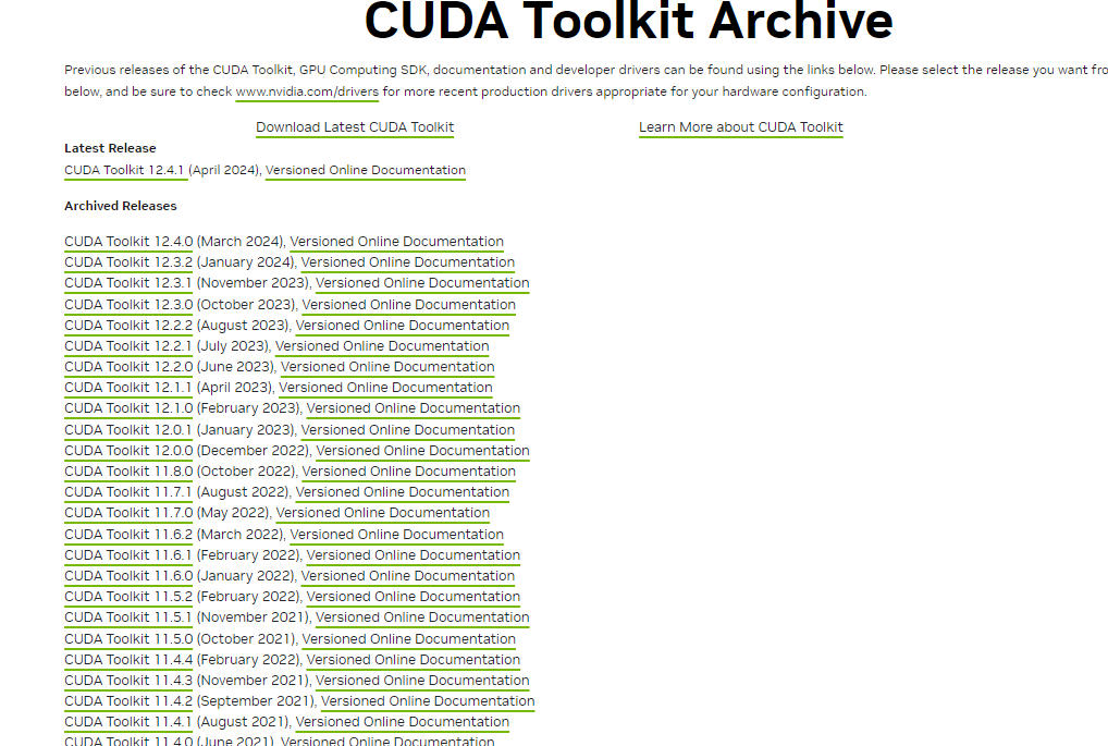 去哪儿下载呢?去这儿: https://developer.nvidia.com/cuda-toolkit-archive